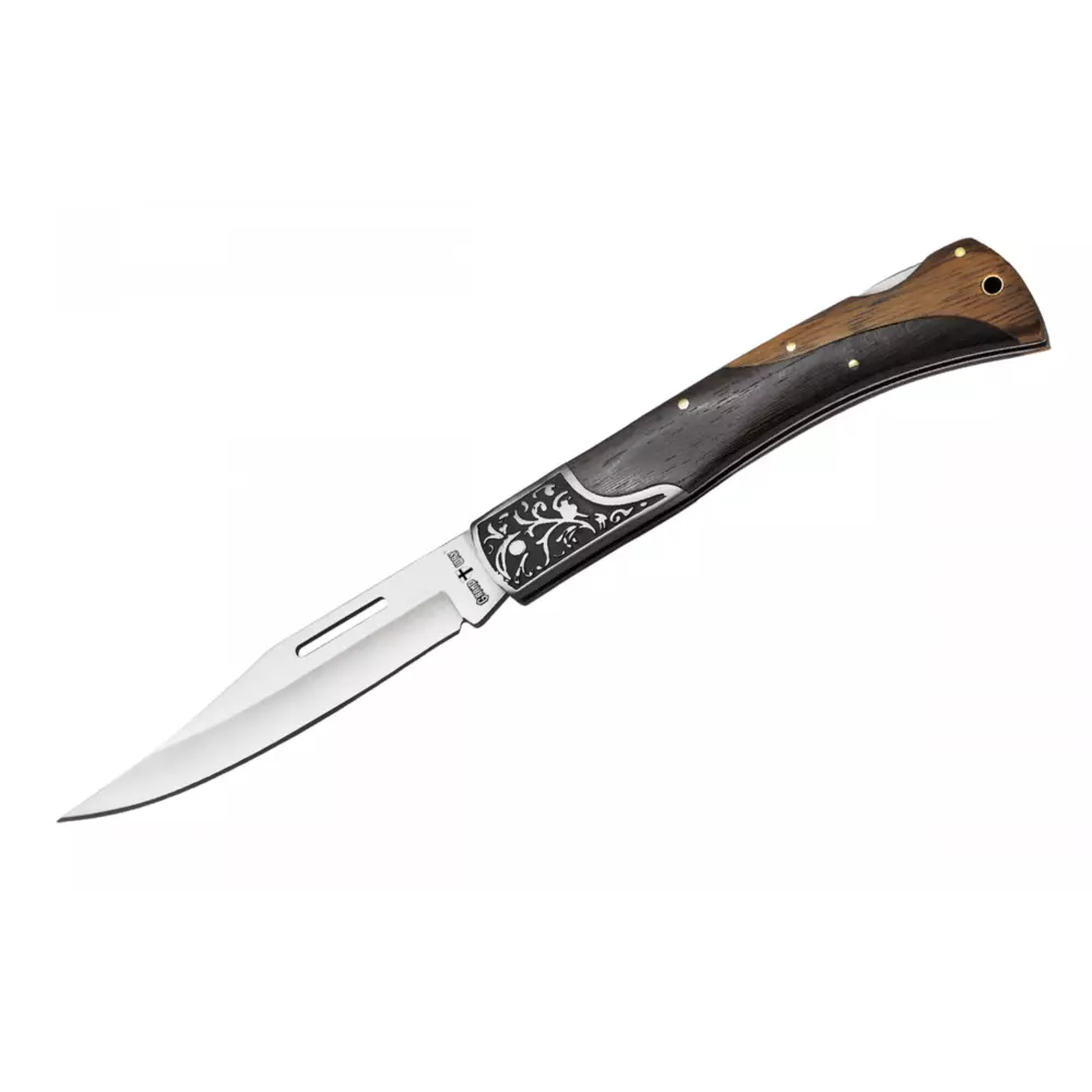 Вам надоели складные ножи с коротким клинком, которыми неудобно разрезать буханку хлеба? Выход есть! У этого ножа с длиной клинка все в порядке. Крупная колбаса, хлеб, разделка рыбы… этому ножу по плечу все, что делает и нескладной нож. Замечательный нож с очень удобной рукоятью. Приятная тяжесть ножа, обусловлена толстыми накладками и прочной стальной проставкой в рукояти. Крупный и надежный нож для различных задач.