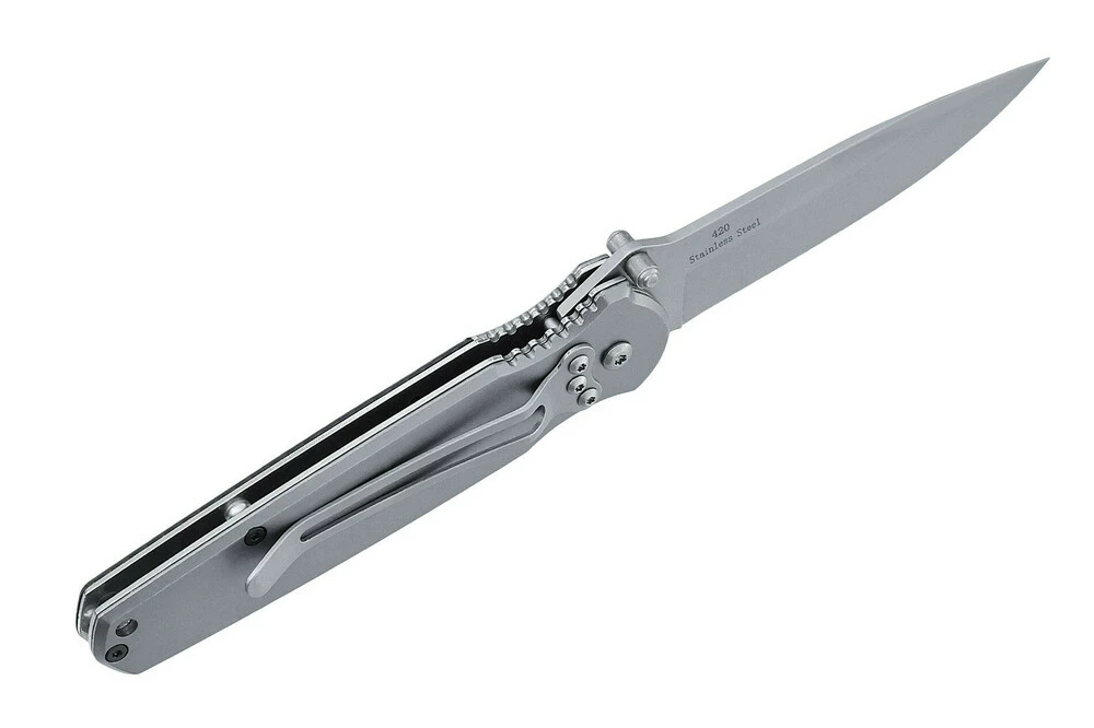 Рукоять этого ножа имеет симметричную форму. В сложенном положении клинок почти полностью скрывается в рукояти, что делает ношение этого ножа комфортным и безопасным. Для удобного и быстрого раскрытия ножа на клинке предусмотрен специальный двусторонний штифт. В открытом положении клинок фиксируется надежным и отработанным в производстве замком Liner Lock, который замечательно себя зарекомендовал как простое, надежное и неприхотливое устройство фиксации клинка. Он устойчив к загрязнению и позволяет легко складывать нож одной рукой.