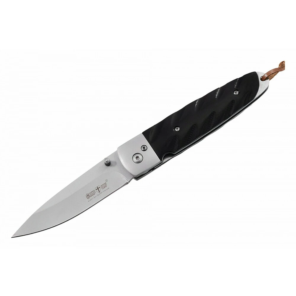 Специальный штифт на клинке позволяют легко открывать нож одной рукой. Исключительно интересная модель, в которой накладки из красивого дерева имеют дополнительную 3D обработку для улучшения хвата этого компактного ножа. Темное дерево замечательно сочетается с сатинированными больстерами и хищным клинком. Для удобства нож уже от продавца комплектуется кожаным темляком. Стильный, компактный и функциональный нож на каждый день.