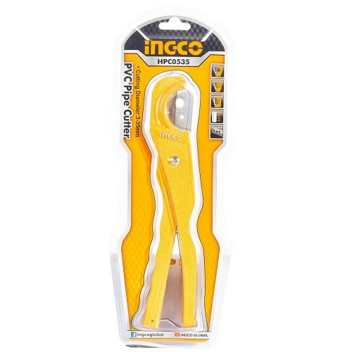 Ножиці INGCO HPC0535 призначені для різання пластикових труб діаметром від 3 до 35 мм. Оснащені фіксатором ручок для зручного й безпечного зберігання. Різальна частина виконана зі сталі марки 4cr13. Довжина ножиць 210 мм.