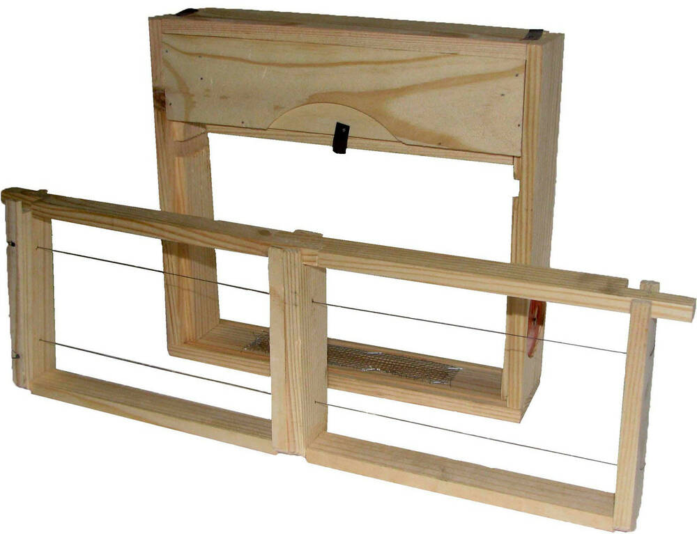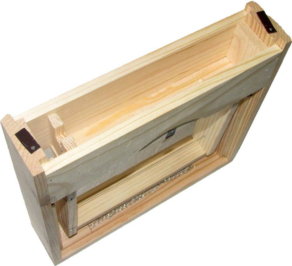 Внутрь нуклеуса помещена мини-рамка с натянутой вощиной для отстройки сотов. Размер рамки соответствует 1⁄2 полурамки.