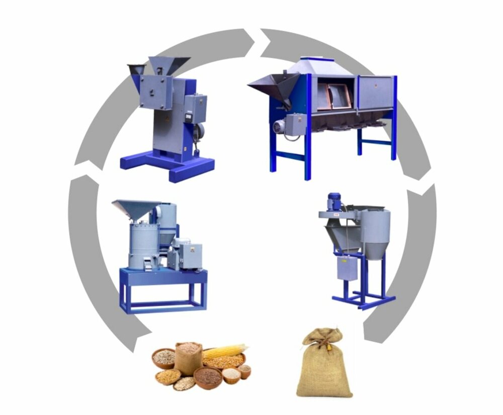 В состав линии могут входить следующие технологические агрегаты: машина шелушильно-шлифовальная, сепаратор пшена, оборудование для помола зерна, просеиватель, зерновой аспиратор, , а также комплект механизации.