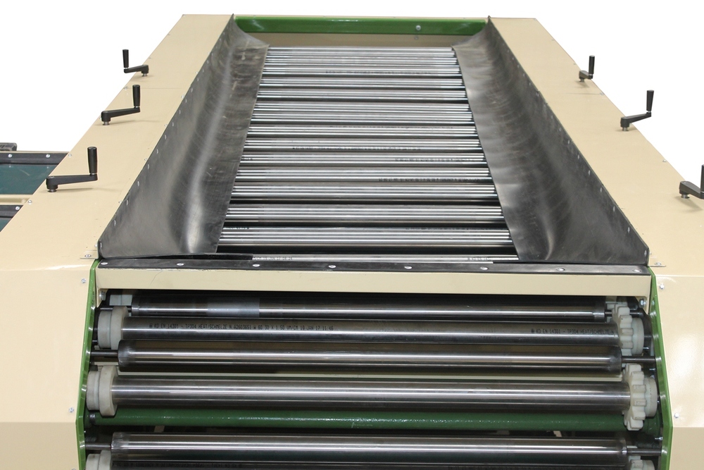 оборудование машина для калибровки по размеру картофеля и овощей УК-10-01 - предназначена для автоматической калибровки овощей. Отличительной чертой Роликового калибратора является его универсальность. Калибровочная установка калибрует как продолговатый продукт (морковь), так и круглый продукт (картофель, лук, свекла). Калибровка происходит за счет зазора между валами. Зазор регулируется на усмотрение заказчика от 20 мм., до 120 мм.При калибровке продукт делится на 3 фракции: крупный, средний, мелкий.Во время движения расстояние между роликами увеличивается, продукт проваливается на ленточный транспортер.