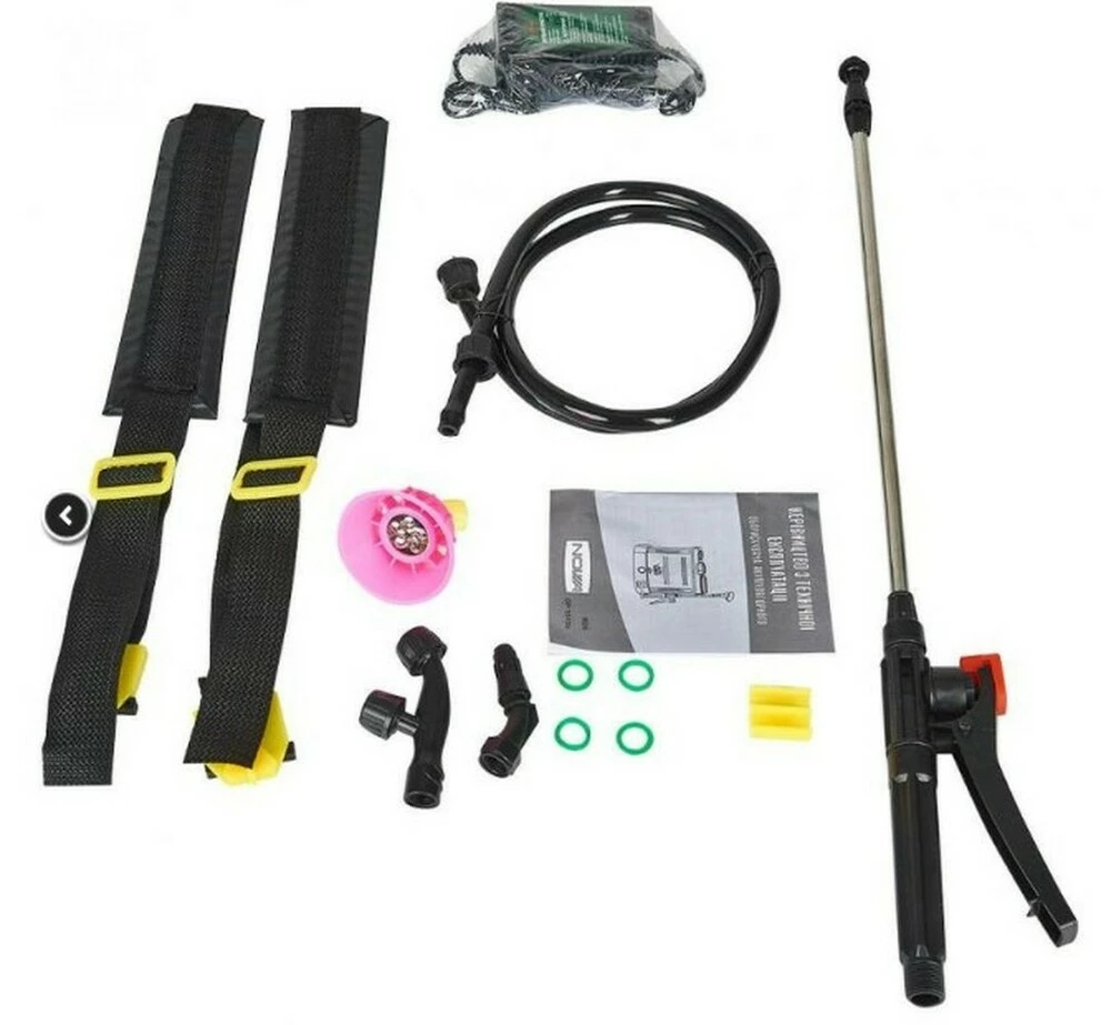 Комплектація Обприскувач; Насадки; Телескопічна штанга; Гарантійний талон; Інструкція з експлуатації; Упаковка.