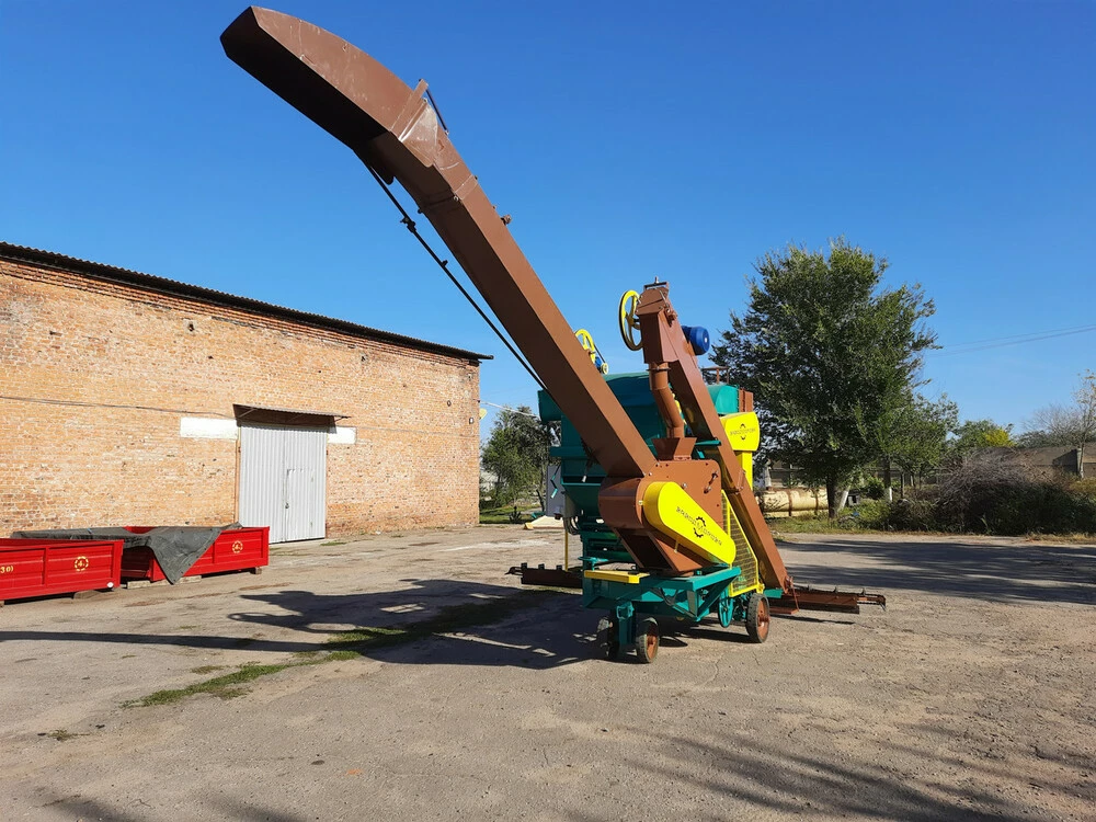 Циклон усуває пил у зерновій масі, а триммер з поворотом на 180 градусів в обох напрямках забезпечує розподіл очищеного зерна під час завантаження і безперервний процес його завантаження. Мінімальна висота звантаження безпосередньо в вантажний транспорт-- 3,70 метра