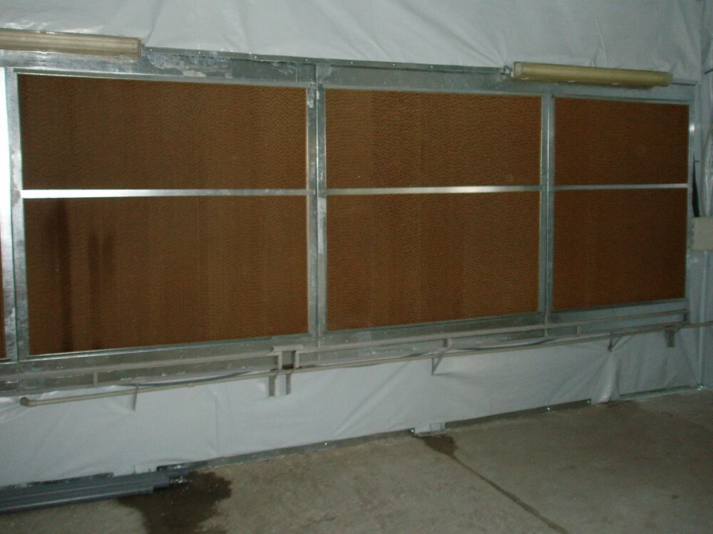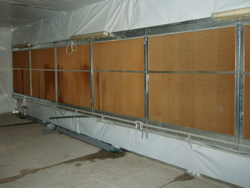 Проходя испарительно- охладительную систему , воздух охлаждается и одновременно очищается от пыли и насекомых.