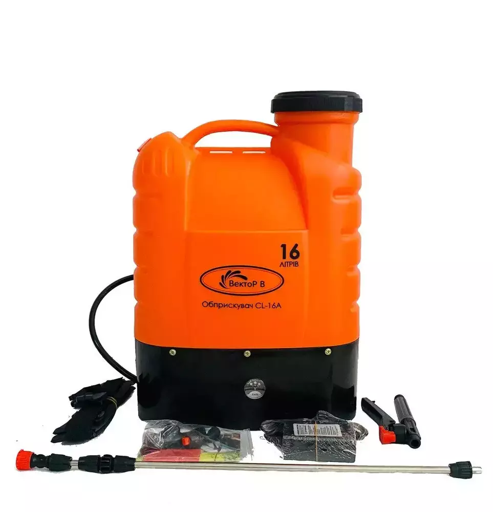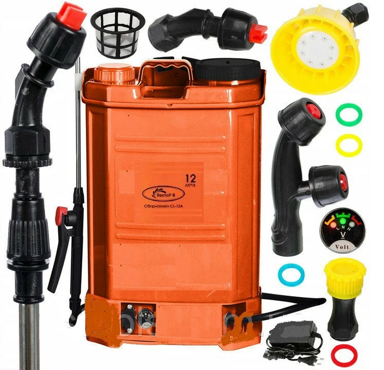 Опрыскиватель аккумуляторный Вектор-В CL-12A+ самая покупаемая модель на рынке Украины. Опрыскиватель оснащен аккумулятором мощностью 12В, 8Ач который позволяет работать на одной зарядке практически весь сезон . Небольшой вес аппарата (4, 5 кг ) и удобные шлейки с мягкой спинкой позволяют носить опрыскиватель на спине. Кроме того, диафрагменный гидронасос создает давление от 2 до 4 Бар с мелким распылом, что позволяет эффективно обрабатывать большие площади малым объемом рабочего раствора.