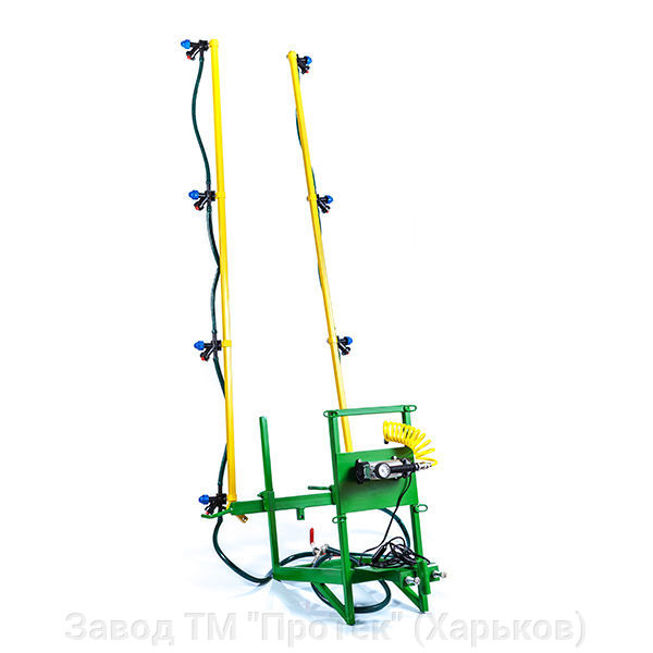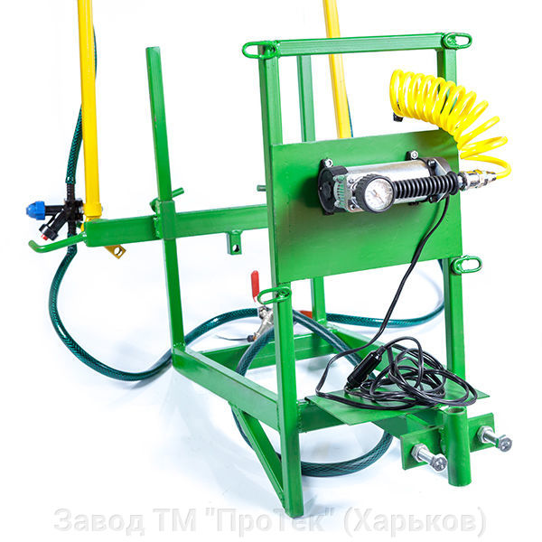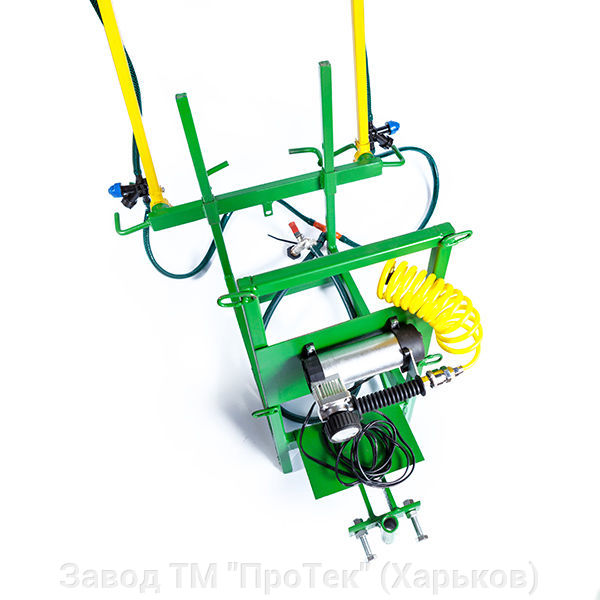 Опрыскиватель ПроТек 50 без бочки для мотоблока предназначен для химической защиты кустарников и растений. Избыточное давление создается автомобильным компрессором 12В, рабочее давление 2-3 атм.