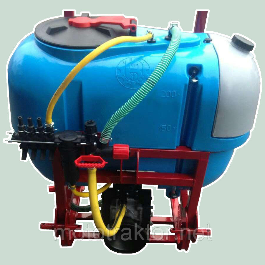 Особенности: Бочка 200 литров, захват штанг 8м, одинарные форсунки с отсекателем и сечением 0.3мм, усиленная полностью гнутая рама, плотный пластик, качественный распределитель, насос Tolvery 120л/мин, смешиватель, 4 ступени фильтрации