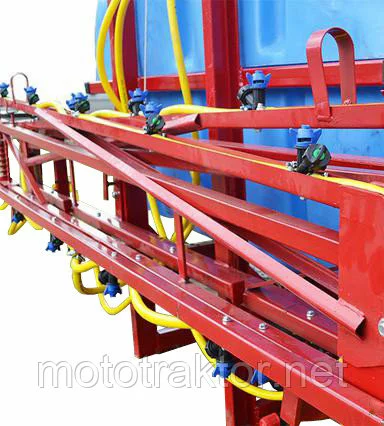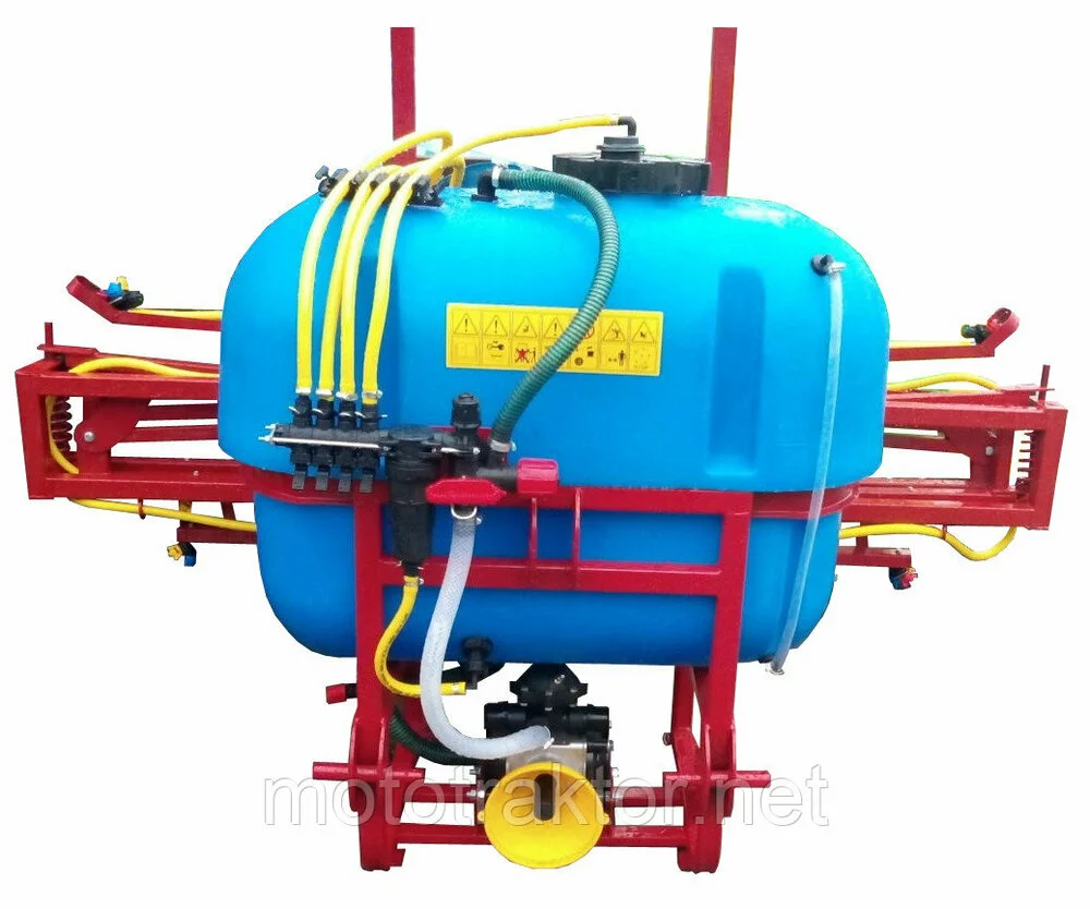 Резервуар для раствора, установленный в закрытую раму с раскидными штангами, удерживающие армированные шланги, с подсоединенными форсунками, идущие от распределителя с высокоточным глицериновым манометром. Подача жидкостей происходит за счет насоса, приводящегося в работу от вала отбора мощности. Имеет четырехступенчатую систему фильтрации. Агрегатируются с тракторами от 15 до 50 л.с., в зависимости от объема бака.