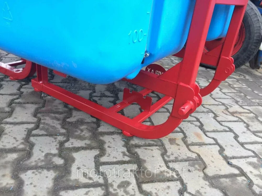 Плотный полиэтиленовый резервуар с химо-ударо-защитными свойствами, установленный в сварную раму из гнутой профилированной трубы прочного сплава с усиленной конструкцией и порошковой покраской. Фильтрующее сито у горловины бака.