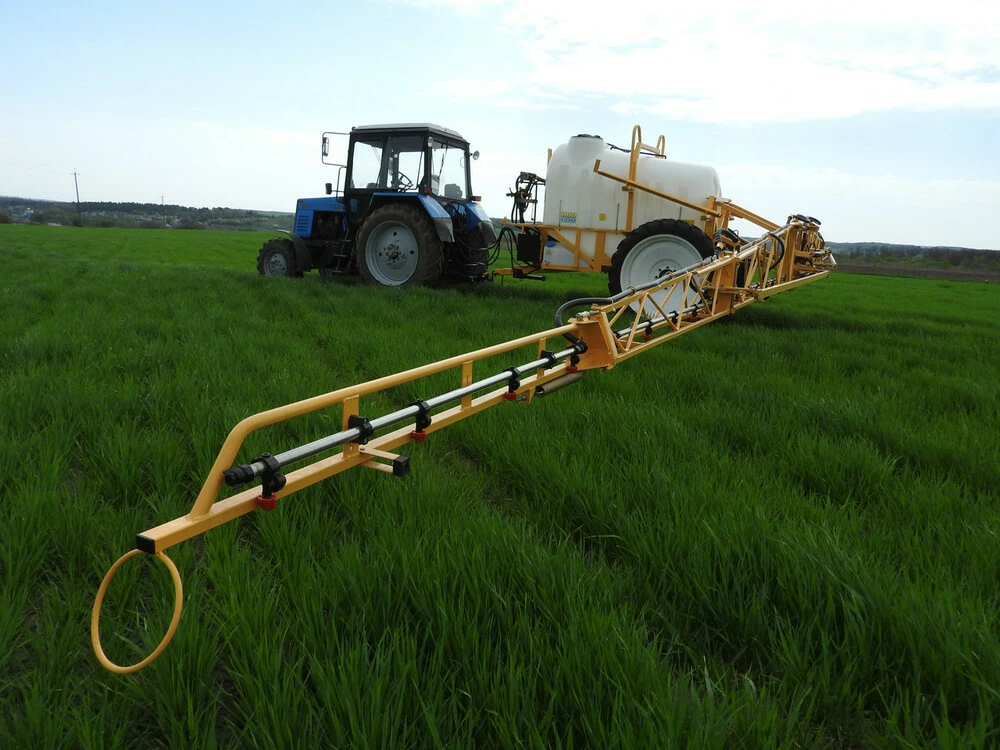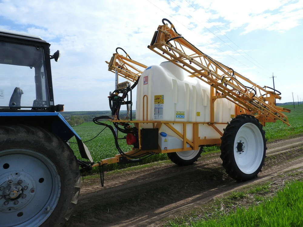 Прицепной опрыскиватель КРОНОС 3000-18. Объем бака 3000л, ширина захвата штанги 18м.
