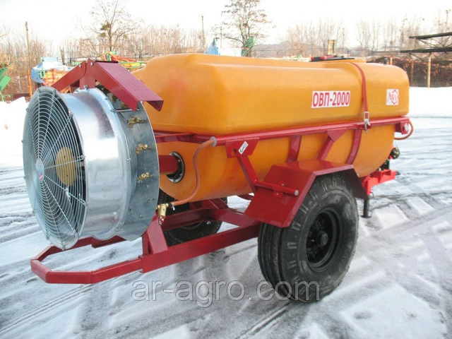 Агрегатируется с тракторами класса 1.4 т.с. Опрыскиватель состоит из шасси, бака из полимера, карданной передачи, насоса, силового агрегата, регулятора давления, вентиляторного рабочего органа. Наличие вредукторе двух скоростей позволяет оптимально использовать мощность трактора, а также обрабатывать различные многолетние культуры, изменяя мощность воздушного потока. Пульт для управления технологическим процессом опрыскивания, позволяет включать и выключать левую или правую распилевательную секцию.Двухпозиционная головка с распылителями различного типоразмера и отсечным устройством обеспечиваетбыструю и удобную смену нормы расхода. Вентиляторный рабочий орган химстойкости покрытием.Диафрагменный насос обеспечивает стабильное давление и надежную работу гидравлической коммуникации.