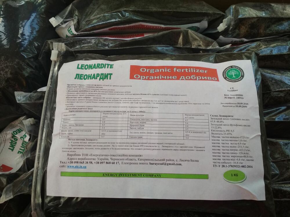 • Можливість прямого використання леонардиту як добриво без додаткової обробки з витратою від 3 кг до 5 кг леонардита на 1 сотку землі.