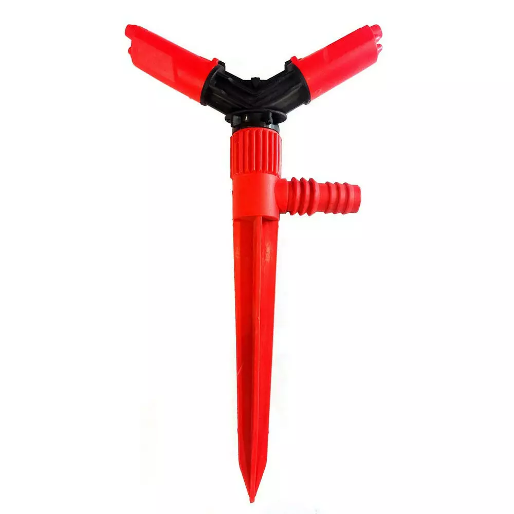 Ороситель-вертушка на 2 распылителя с ножкой применяется для полива небольших площадей на огороде и в саду. Дождеватель такого типа создает равномерное разбрызгивание, которое препятствует размыванию земляного покрова. Вертушка состоит из вращающейся верхней части и двух регулируемых лопастей. Основным достоинством данной модели является качественное орошение территории даже при низком давлении в магистрали.