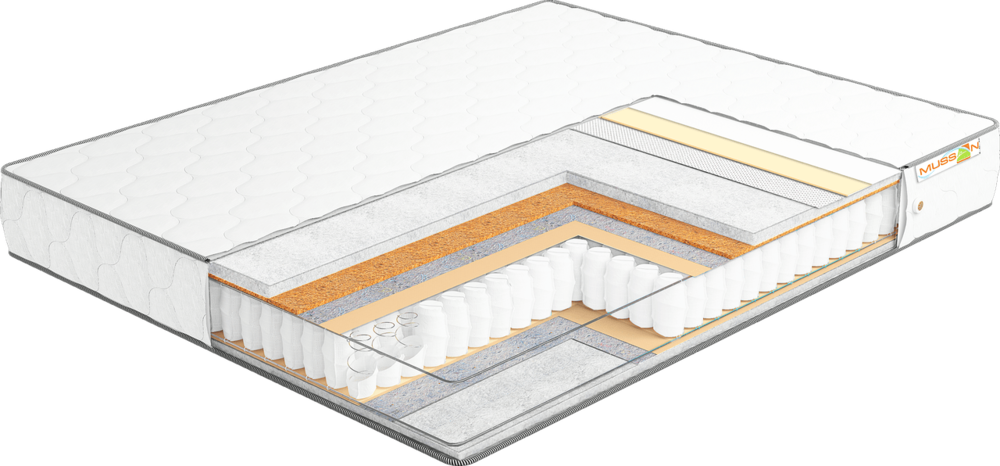 Благодаря применению с одной стороны матраса натуральной кокосовой койры — матрас имеет различную степень жесткости сторон, что дает возможность легко подобрать степень жесткости спального места.
