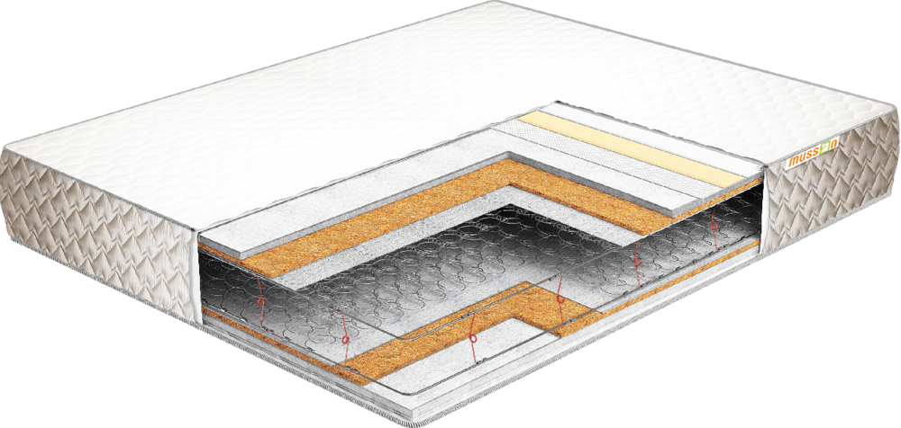 Данная модель имеет одинаковую степень жесткости с обеих сторон, благодаря сочетанию надежного классического пружинного блока Bonnell и применения в составе наполнения матраса кокосовой койры с двух его сторон.
