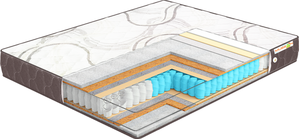 Настилочные слои не приклеиваются друг к другу, а пристреливаются специальными скобами к рамке и пружинному блоку матраса