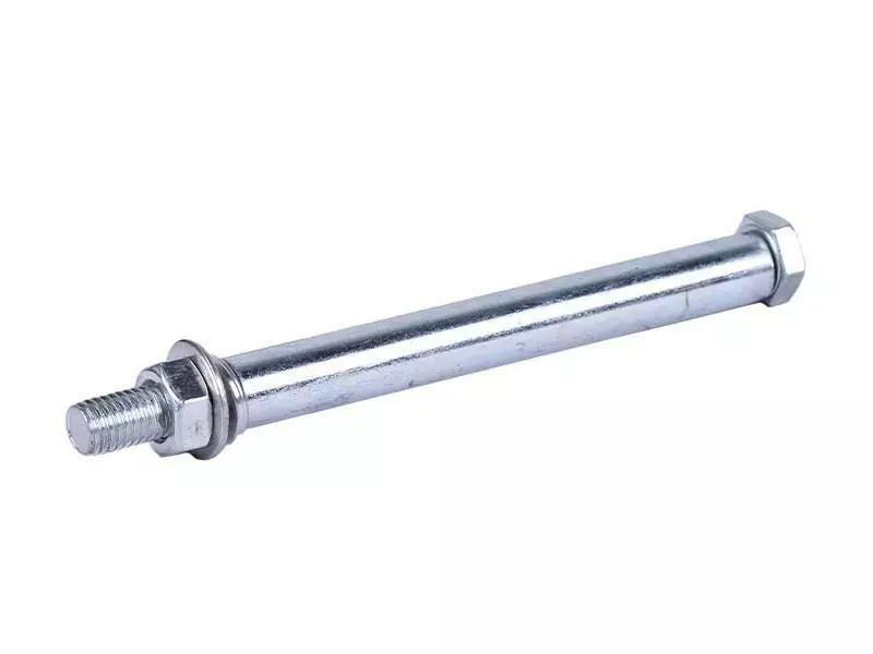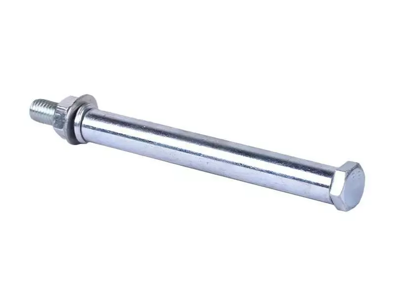 Ось колес ТАТА для садовой тачки, 12*170 - элемент крепления, предназначенный для фиксации колеса к раме тачки садовой. Изготовлена из качественной стали и способна выдерживать большие нагрузки, возникающие при эксплуатации тележки. Конструкция оси содержит шайбы гроверы препятствующие ослаблению гаек в процессе эксплуатации и повышающих безопасность использования изделием. Защитное покрытие металла слоем цинка предотвращает коррозию, обеспечивая продолжительный срок службы. Для выбора оси для садовой тачки следует отталкиваться от ширины колесного диска и толщины элементов рамы в месте крепления колеса.