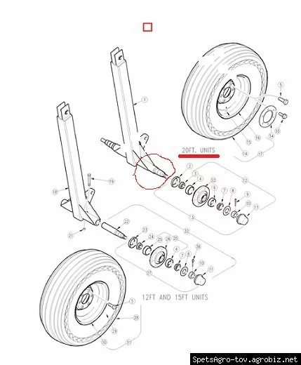 Ось ступицы с гайкой (половинка на сцепке  срн 2000) Great Plains.