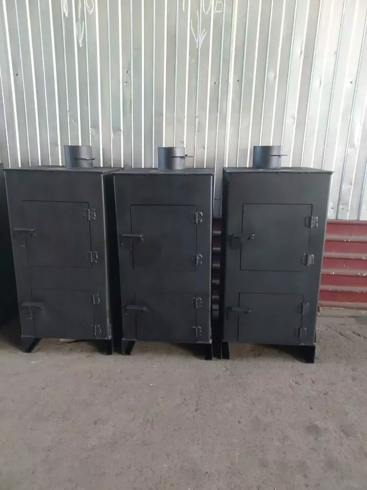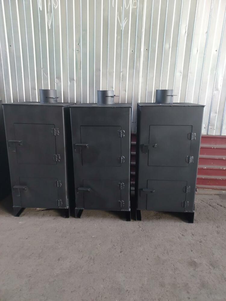 Благодаря пиролизному типу горения достигается максимальная теплоотдача от буржуйки, при этом значительно снизилось золообразование, что облегчает очистку. Использование экономичных источников питания, таких как дрова, щепки, КПД достигает 80%. Буржуйка изготовлена с варочной поверхностью и рассчитана на отопление помещений объемом до 70 кв.м