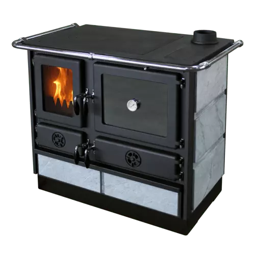 Печь с водяным контуром MBS Thermo Magnum Stone 16 кВт предназначена для отопления Вашей кухни и приготовления пищи. Ее материалом является чугун и эмалированная сталь, которая продолжает строк службы печи и придает ей красивый эстетичный вид. Данная печь доступна в кремовом, красном, бордовом и черном цветах. Варочная поверхность печи имеет одну конфорку, а сама печь имеет еще и шкаф для приготовления пищи. В комплектацию духового шкафа входит противень и датчик температуры. Также имеется ящик для хранения дров. Дверцы герметично прилягяют к топке. Плиту также можно прикрывать декоративной крышкой и подключать к дымоходу с помощью патрубка.
