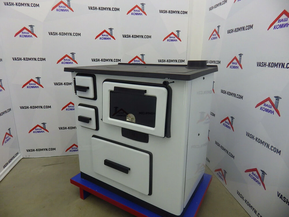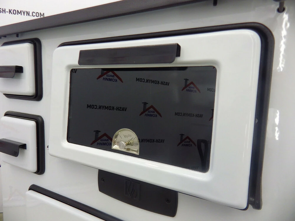 Обладает приятным спокойным дизайном. В отделении топочной камеры есть ограничитель древесины. Под нею находится отделение зольника. С правой стороны находится духовой шкаф. Нижняя ниша открывается и может использоваться для хранения дров. Производится в разной цветовой гамме: белый, темно-коричневый, черный.