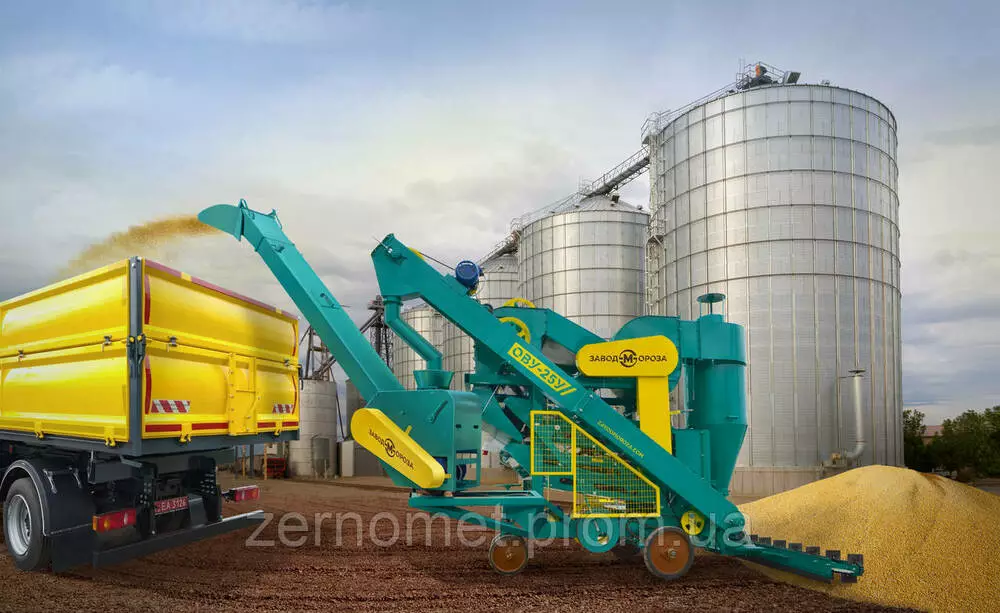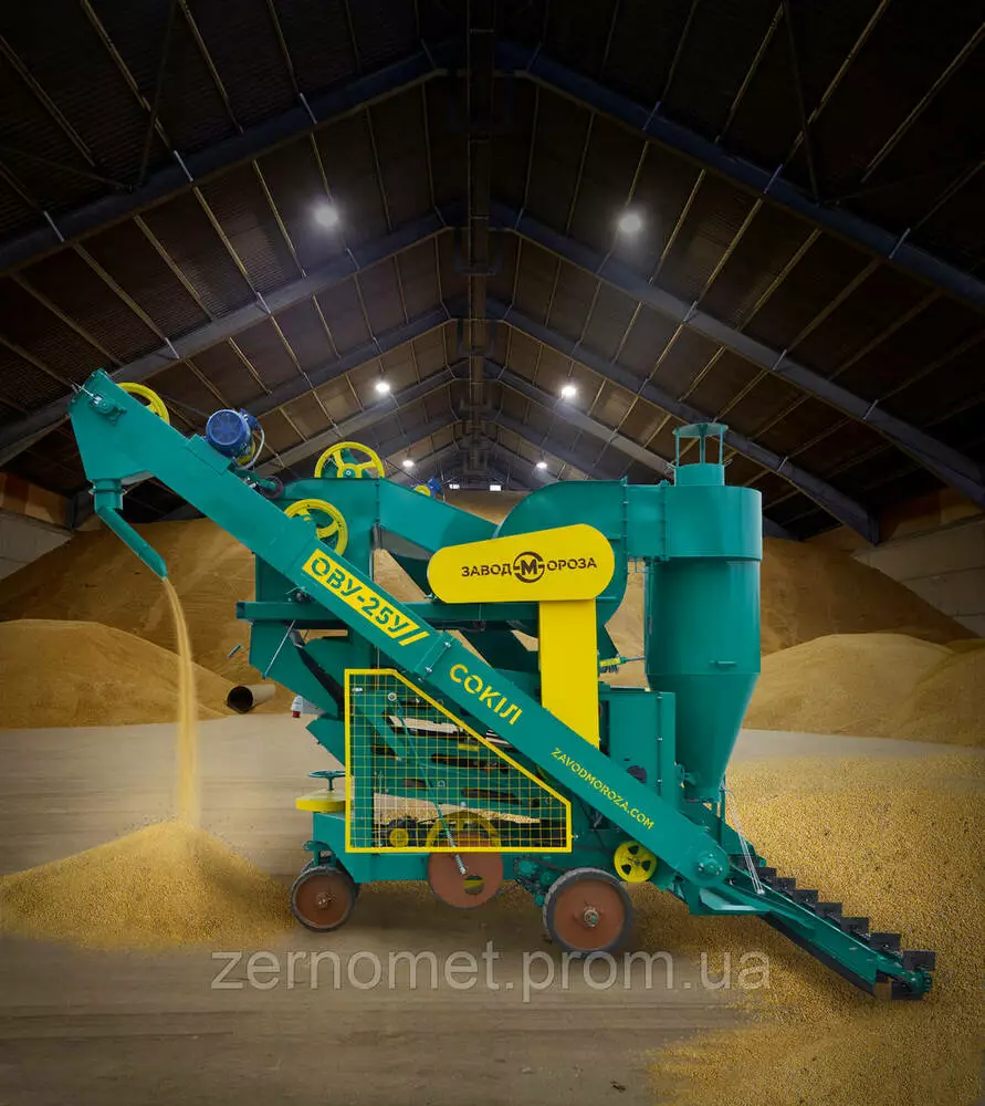 Ефективність очищення зернового вороху істотно залежить від рівня оснащення і правильного підбору робочих органів машини. І на «Заводі Мороза» на посиленому ОВУ-25 разом з вивантажувальною секцією збільшеної довжини додатково встановили циклонний пиловловлювач і тример, які сприяють швидкій і якісній очистці маси зерна різних сільгоспкультур.