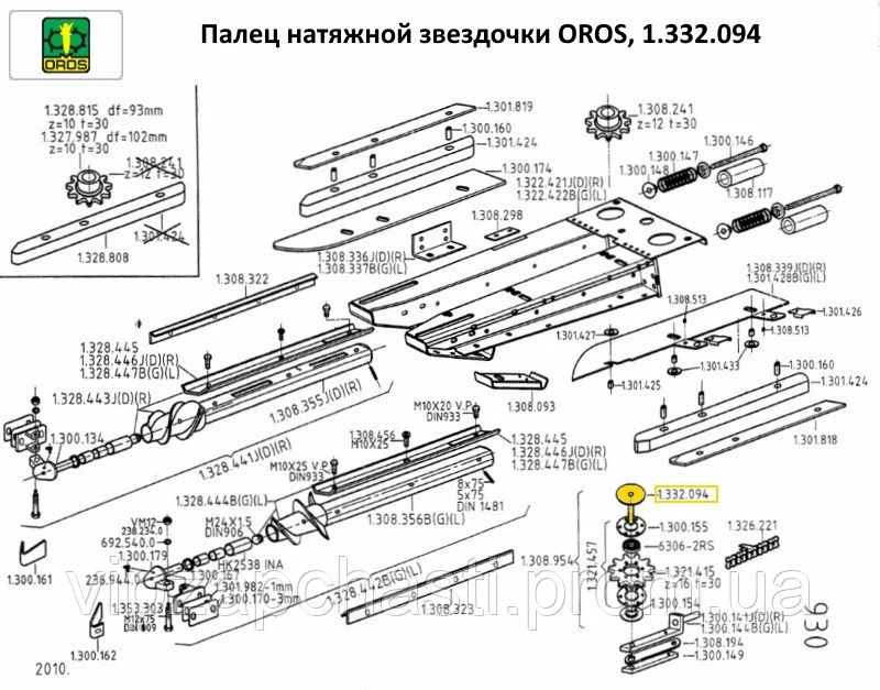 Палец звездочки в сборе OROS, 1.332.094