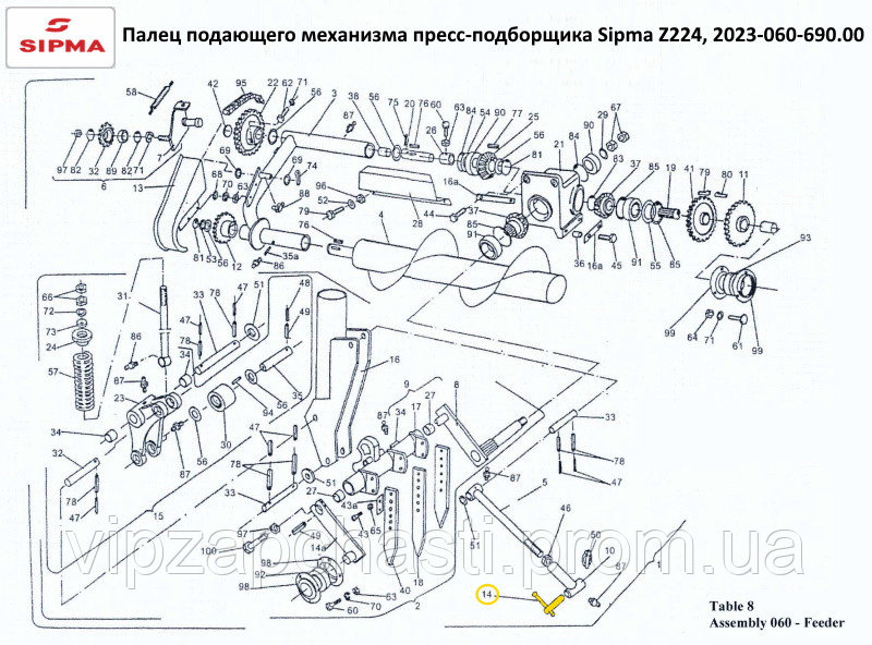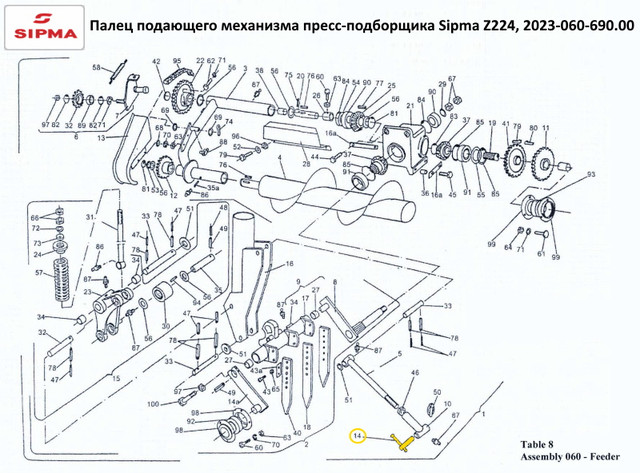 Палец подающего механизма пресс-подборщика Sipma Z224, 2023-060-690.00