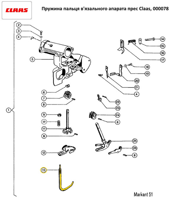 Крючок прижимной захвата шнура вязального аппарата Claas 000079.1, 000079.1
