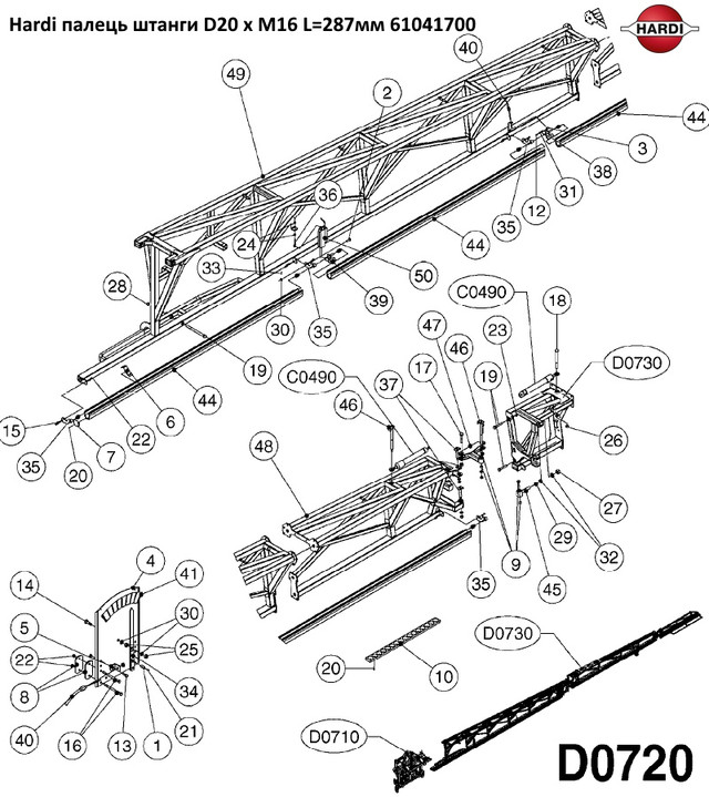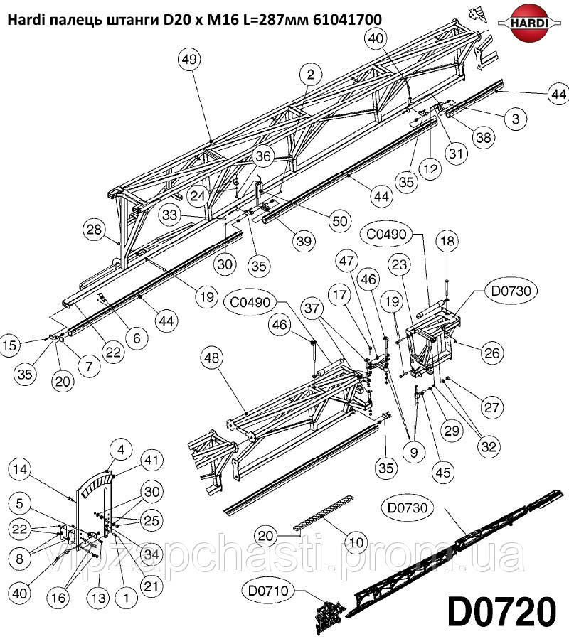 Палець штанги на оприскувач HARDI D20 х M16 L=287мм 61041700