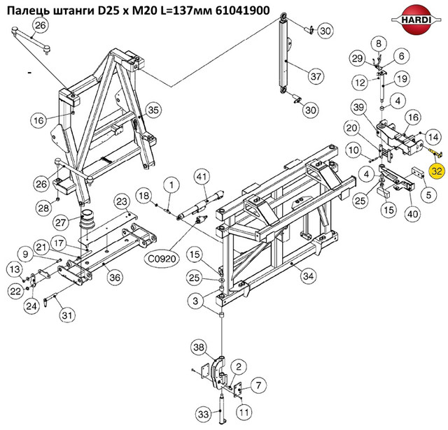Hardi палець штанги D25 х M20 L=137мм 61041900