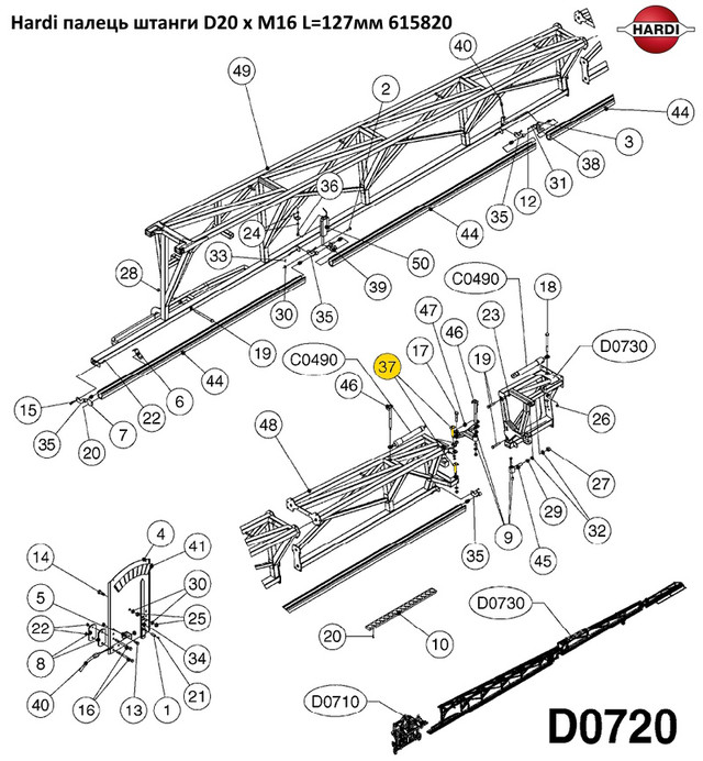 Hardi палець штанги D20 х M16 L=127мм 615820