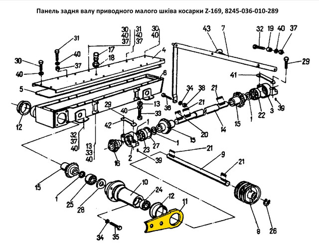 Панель задняя вала приводного малого шкива косилки Z-169, 8245-036-010-289