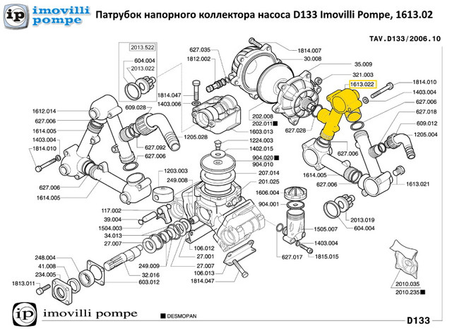Патрубок напорного коллектора насоса D133 Imovilli Pompe, 1613.022