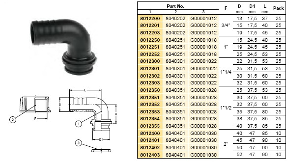 Патрубок угловой 90 гр. на опрыскиватель ARAG (Италия)