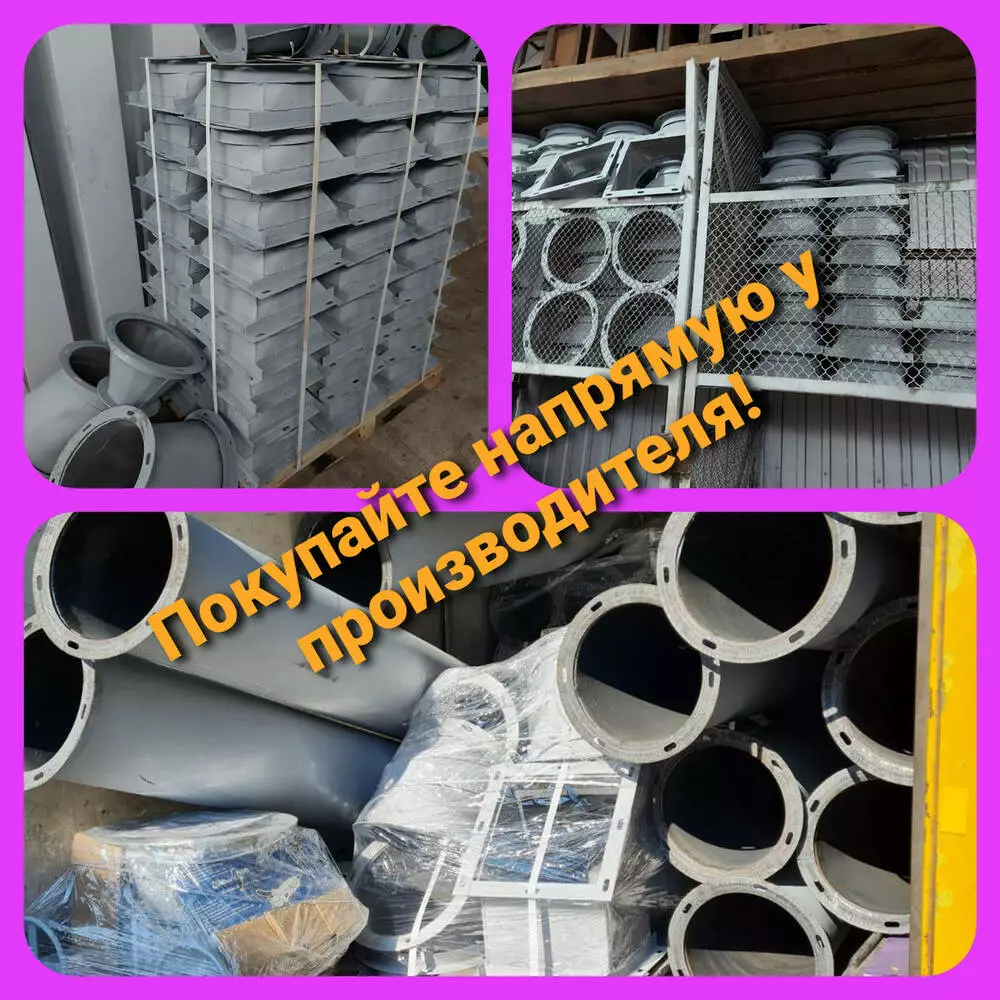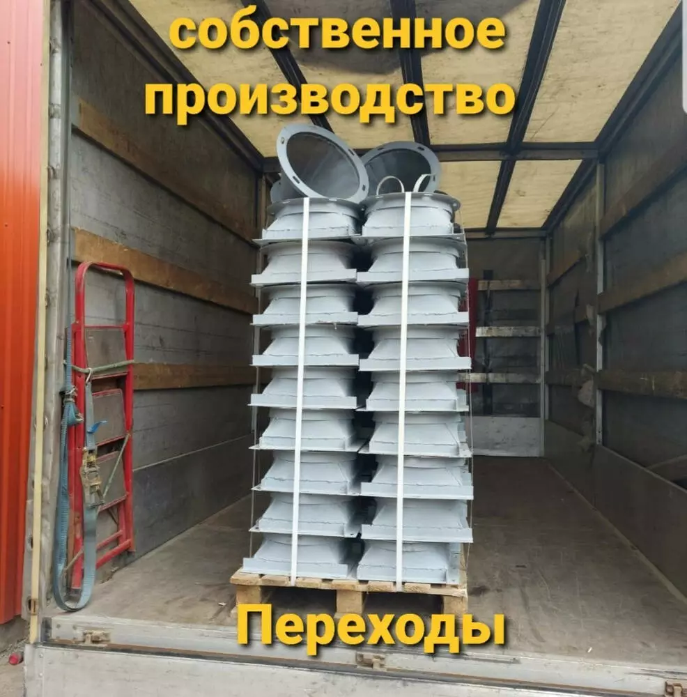 Переходные патрубки изготавливаются для перехода самотечного устройства с круглого на прямоугольное сечение или наоборот. Чаще всего они необходимы для присоединения самотечных труб к бункерам и оборудованию
