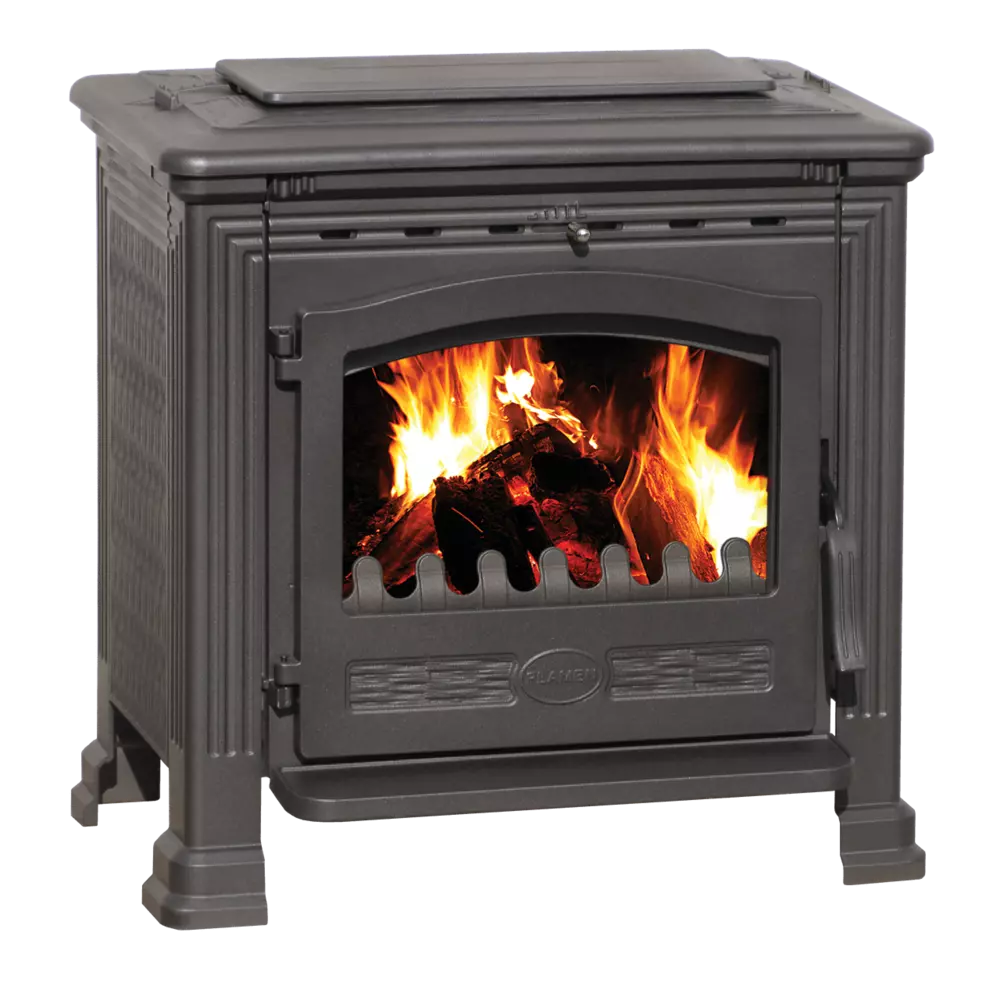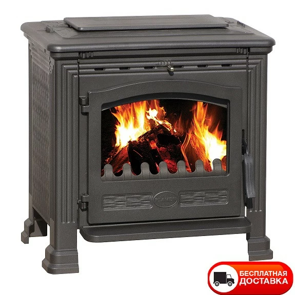 В большой камере сгорания достаточно места для поленьев длиной до 62 см. Твердая чугунная конструкция обеспечивает долгий срок службы и, следовательно, годы беспрепятственного нагревания. Устройство тщательно опломбировано и имеет съемный зольник. Патрубок дымохода можно расположить сзади вверх или назад (легко трансформируемый). Верхнюю тарелку можно использовать для приготовления еды и напитков.