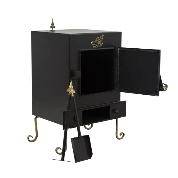 Печь-камин Экожар  с камерой дожига вторичных газов имеет специальную конструкцию, которая при небольших габаритах позволяет  с легкостью обогреть помещение до 30 м кв благодаря пиролизу. Изящная форма печки дополнит и украсит интерьер. Под воздействием высоких температур и подаче дополнительного воздуха в эту камеру, происходит дожигание  вторичных газов в "камере дожига".Благодаря пиролизу, выделяется дополнительное тепло и КПД горения увеличивается до 91-94%. При этом экономится топливо. Кроме обогрева помещения ,температуры на поверхности печки  хватает для  подогрева воды и приготовления легкой пищи. Такая печка незаменима для отопления дач или отдельных помещений(комнат) там ,  где нет возможности или не рационально устанавливать бойлер.