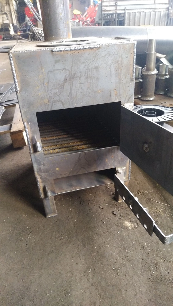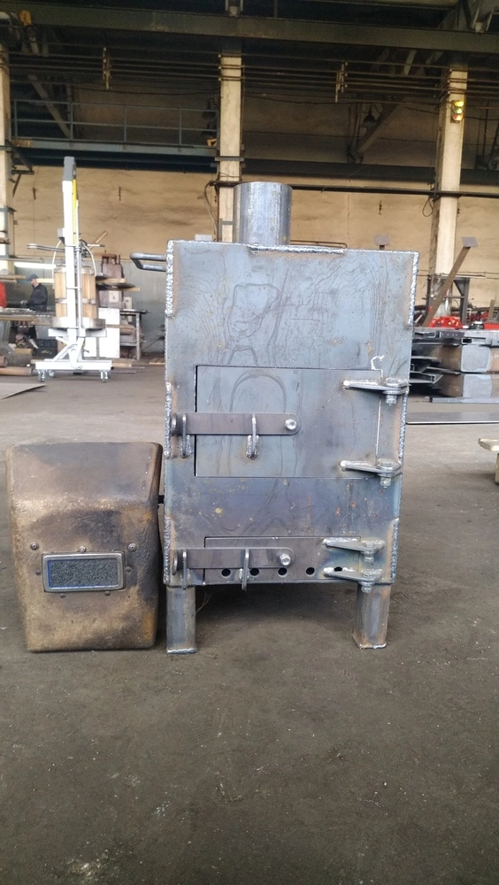 Производственное предприятие ООО "Винмашпостач" изготавливает печи отопительные твердотопливные. Печь представляет собой сварную конструкцию размерами: ширина 33см, глубина 46см, высота от земли 57см, толщина метала 4мм, колосники изготовлены из толстых металлических прутьев. У печи хорошая теплоотдача, есть возможность приготовления на ней еды, что делает ее универсальной, также оптимальные размеры и простая конструкция сборки, дают возможность быстро разместить ее в любом месте, а также быстро разобрать. Сравнительно небольшой вес позволяет легко переносить печь, что делает ее достаточно мобильной. Печь укомплектована трубой для отвода дыма длиной 3м.
