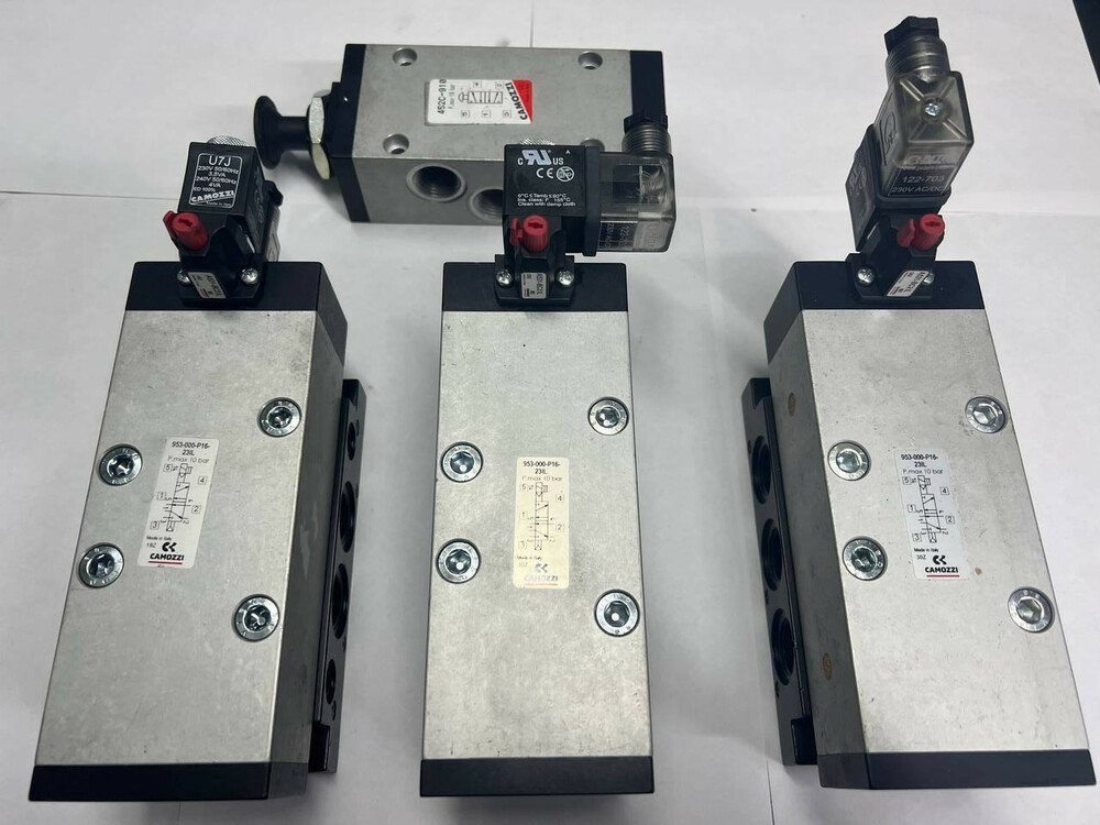 Золотниковый распределитель Camozzi 953-000-P16-23IL с односторонним электропневматическим управлением,5 /2 моностабильный с пневмовозвратом и ручным дублированием - флажок. Монтаж на плите размером 3. Поставляется без катушки и разъема (заказываются отдельно).