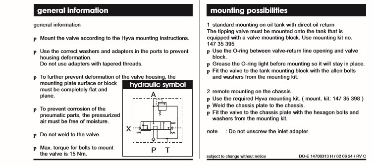 Гидравлическим перекидным клапанам HYVA присущ ряд функций безопасности работы автомобилей-самосвалов. Клапаны серии PT известны потребителям своей надежностью и функциональностью.