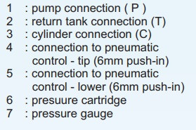- патроны для настройки максимального рабочего давления. Типичные клапаны оборудованы зажимными винтами, которые регулируют максимальное рабочее давление. Водители часто регулируют давление, для увеличения подъемной силы цилиндра (перегрузки). В результате цилиндр может получить повреждения. Клапаны PT имеют сменные патроны максимального давления, с заводской установкой на определенное давление, нерегулируемые. Для изменения максимального давления, необходимо заменить патроны.
