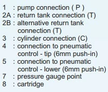 Гидравлический клапан (гидрораспределитель)  – устройство, которое регулирует и направляет потоки жидкости. Он крепится на бак и с помощью шлангов высокого давления соединяется с гидросистемой автомобиля. С помощью гидрораспределительного клапана осуществляется регулировка скорости поднятия и опускания кузова самосвала либо прицепа.Управление клапаном осуществляется пневматическим джойстиком из кабины водителя..