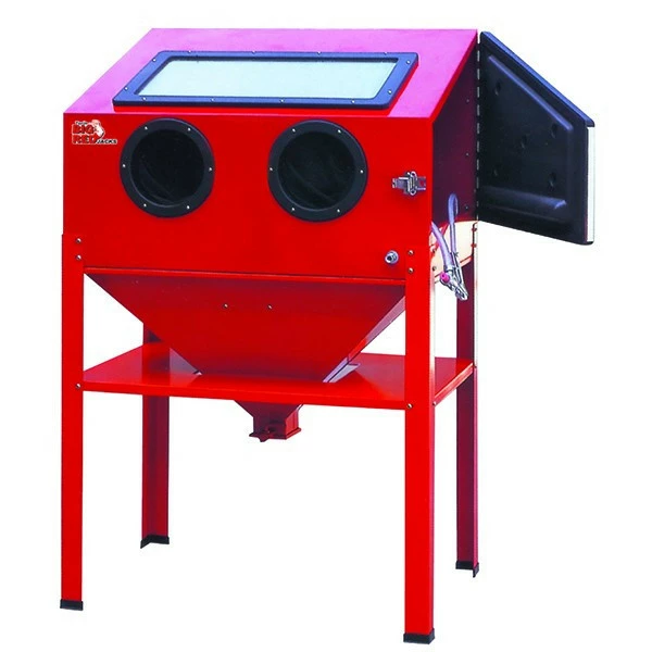 Пескоструйная камера TORIN TRG4222 для обработки деталей, поверхностей разными абразивными материалами при снятии ржавчины, окалины, формовочного грунта, матирования, упрочнения поверхностей, декоративной обработке стекла, а так же для подготовки поверхностей перед покраской. Пескоструйная обработка – холодная абразивная обработка поверхности металлических изделий путём повреждения её поверхности песком или иным абразивным порошком, распыляемым потоком воздуха. При пескоструйной обработке частицы песка ускоряются из пескоструйного аппарата при помощи энергии сжатого воздуха.