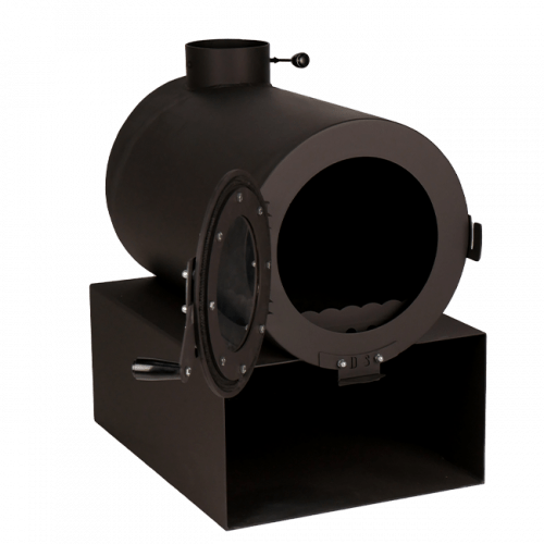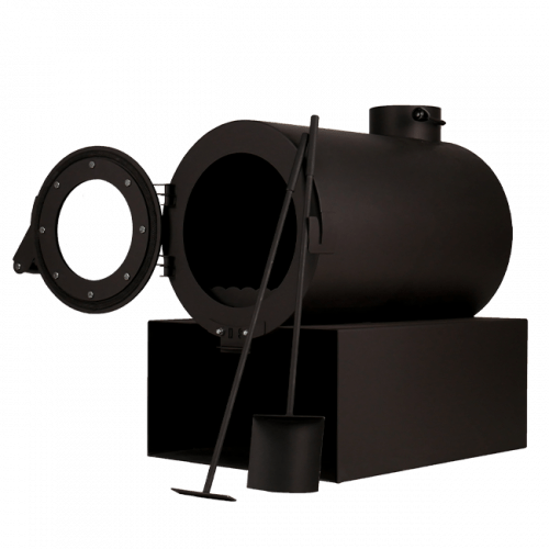 Поєднує в собі приголомшливу зовнішність і величезну потужність, виконана в стилі хай-тек, з просторою основою для зберігання дров.