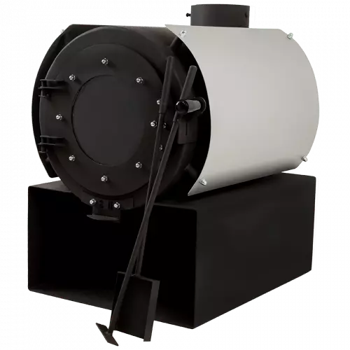 Поєднує в собі приголомшливу зовнішність і величезну потужність, виконана в стилі хай-тек, з просторою основою для зберігання дров.