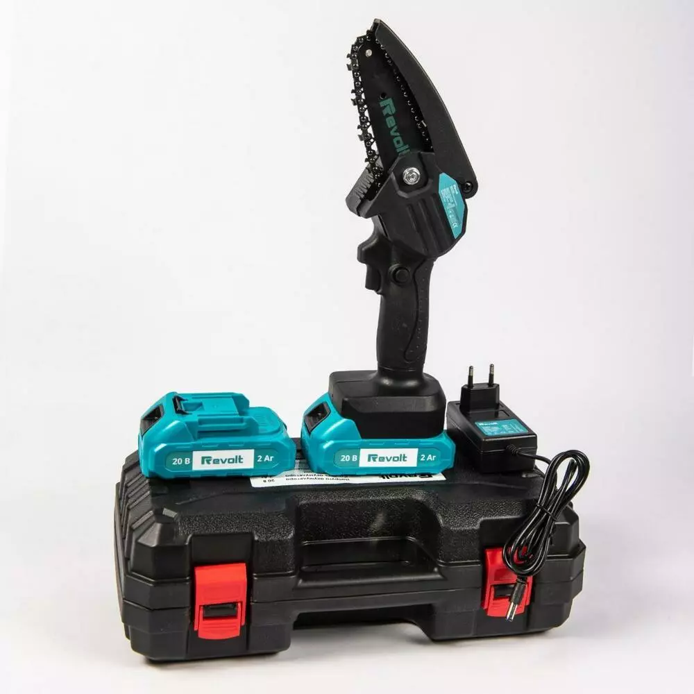 Пила акумуляторна ланцюгова Revolt BCS 20/4 - це портативний інструмент для обрізки дерев та дощок. Пила має легку вагу та ергономічну форму, що забезпечує комфортну роботу. Гнучкий захисний кожух забезпечує додаткову безпеку. Підходить для використання в важкодоступних місцях при роботі в саду або в домашньому господарстві. Ідеальний помічник для точної обрізки дерев, чагарників, а також може виконати більш важкі завдання які виконують бензопилами.