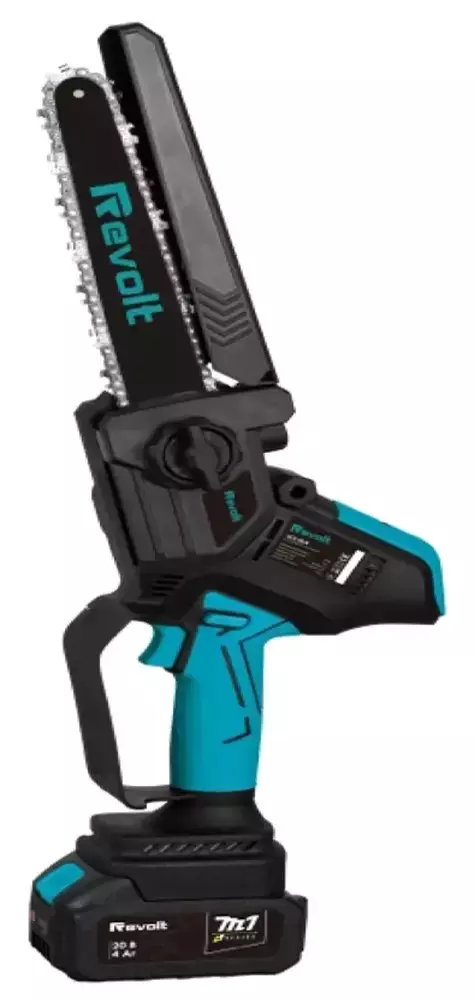 Пила акумуляторна ланцюгова  Revolt BCS 20/8 — це нова модель портативного інструменту серії М1 для обрізки дерев та дощок, відноситься до , що дозволяє використовувати пилу з акумуляторами Makita. Пила має безщітковий двигун, легку вагу та ергономічну форму, що забезпечує комфортну роботу. Гнучкий захисний кожух забезпечує додаткову безпеку.